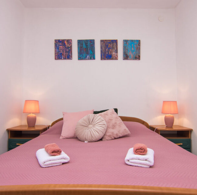 Our cozy 4 Star Pink room in the center of Baška is located only 70 m walking distance from the beach. Furthermore, it is perfect for those looking for a functional and high st