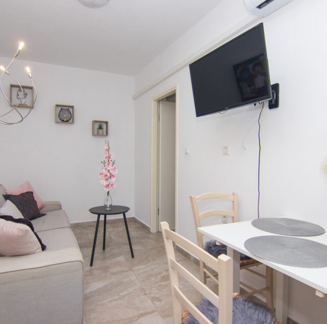 Apartments Krk – Peach studio is located in the center of City of Krk. It is very small studio apartment with small private terrace. The TV is located opposite to bed so ou