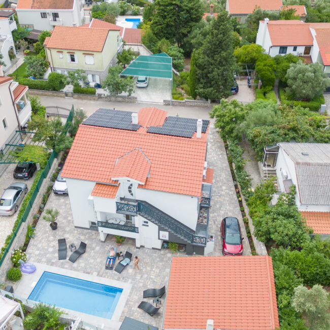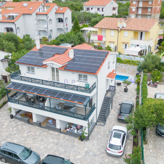 Discover the heart of Krk at our Apartments Flowers with heated pool. Portapisana beach is about 400 meters away, promising sun-soaked relaxation. Step out from your doorstep and embark on the scenic Lakmartinski trail, meandering through fragrant olive groves and lush Mediterranean vegetation. Wander leisurely to nearby quaint villages, immersing yourself in the charm of local life.